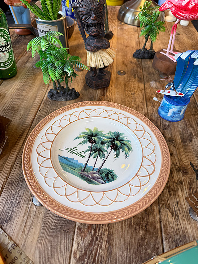まるで年代物のような雰囲気を醸し出してる パームツリー柄の陶器製プレートです。