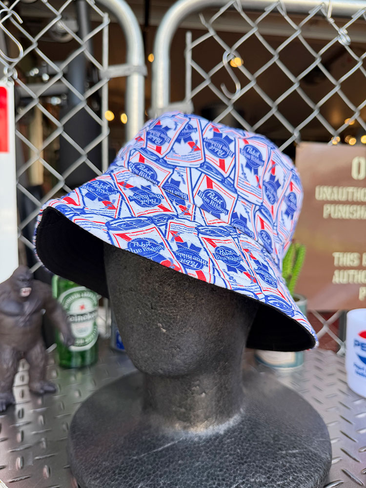 パブスト・ブルーリボン総柄バケットハット。