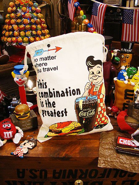 ポップテイスト満点のアメリカンカンパニーロゴが入ったキンチャク袋です。