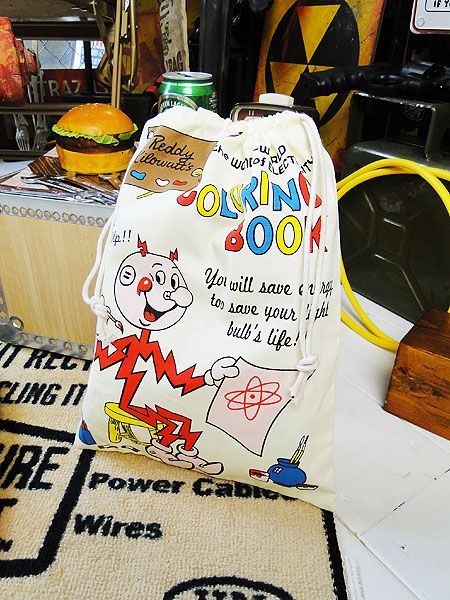 ポップテイスト満点のアメリカンカンパニーロゴが入ったキンチャク袋です。