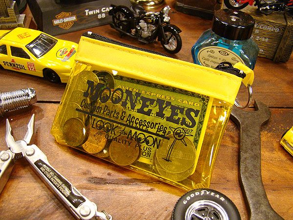 バラバラになると不便なコインやカードをサッと収納して使いやすくしてくれるムーンアイズのキーリング付きジップポーチです。クルマからコンビニに走ったり、ちょっとレンタル屋さんに行く時とか、財布はコンパクトな方が何かと便利!そんなちょうどイイ大きさを計算して作られたのがこのジップポーチです。スケルトンボディなので中身も一目でわかるのも好評なんです。言うならば、いつでもどこでも持って出かけれるポータブルポケットってヤツ!見た目がカッコイイだけに終わらせないムーンらしいこだわりの便利アイテムです!ヽ(^0^)