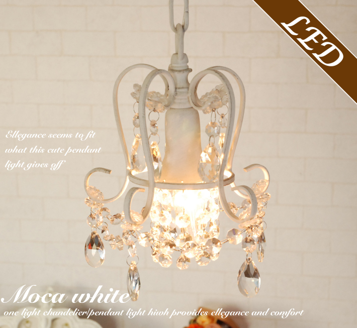 1灯のキュートなシャンデリアのMoca ホワイト。ガラスのキラキラビーズのとっても可愛いペンダントライトです。
