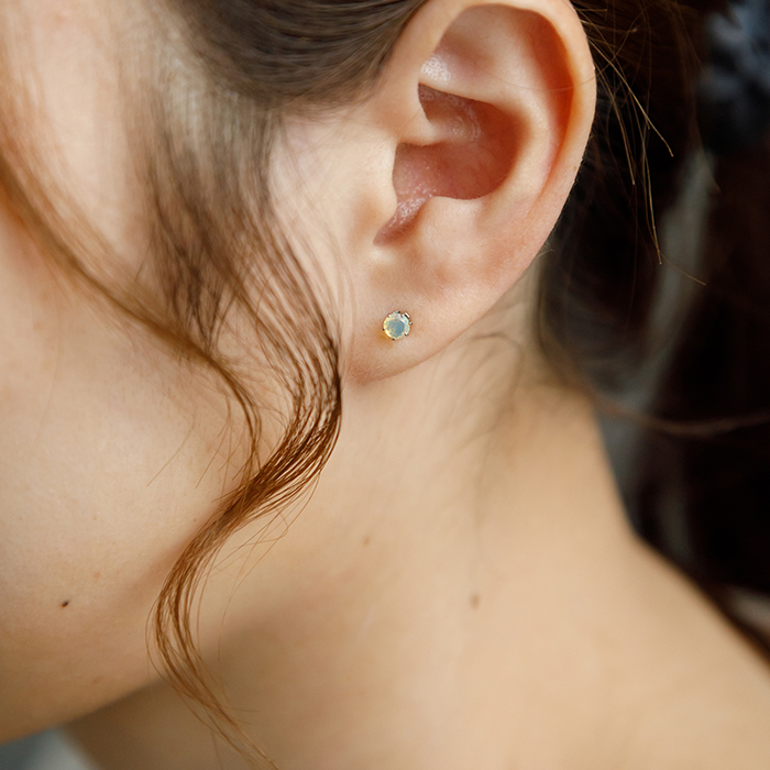 つけっぱなしにできるほど日常に溶け込むデザインです。シンプルな一粒ピアスだからこそ、