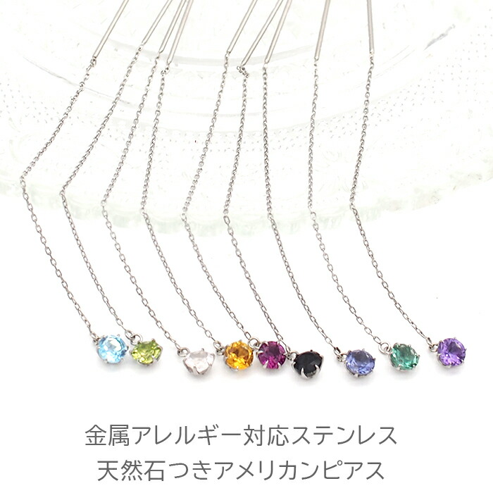 アメリカンピアス レディース ステンレス 金属アレルギー チェーン 天然石 片耳 1個 ピアス 揺れる サージカル 医療用 シンプル アメピ 初心者向け プレゼント