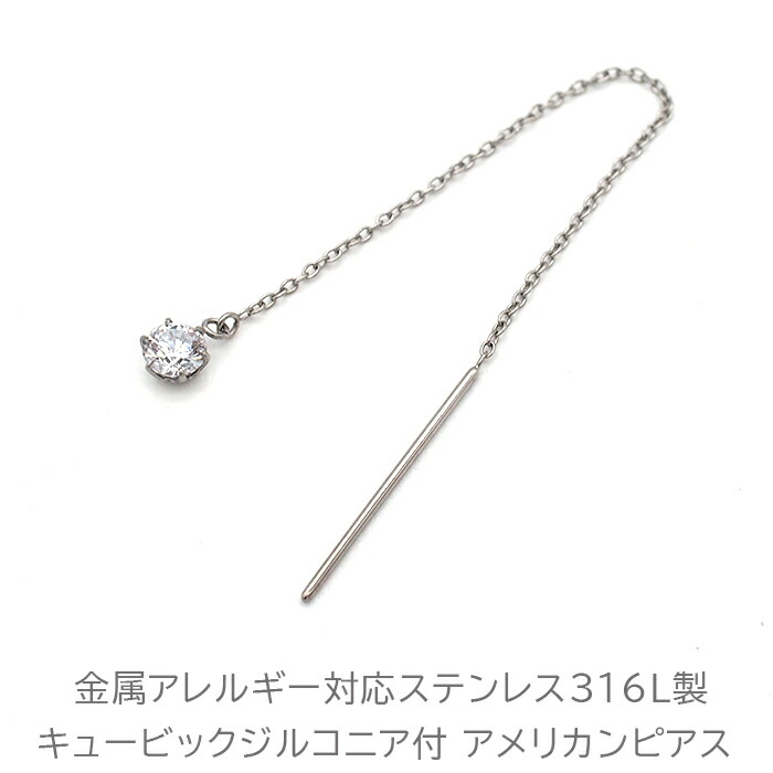 ピアス アメリカンピアス キュービックジルコニア 金属アレルギー対応 ステンレス 極細 チェーン ポスト 揺れる シンプル 上品 片耳 1個