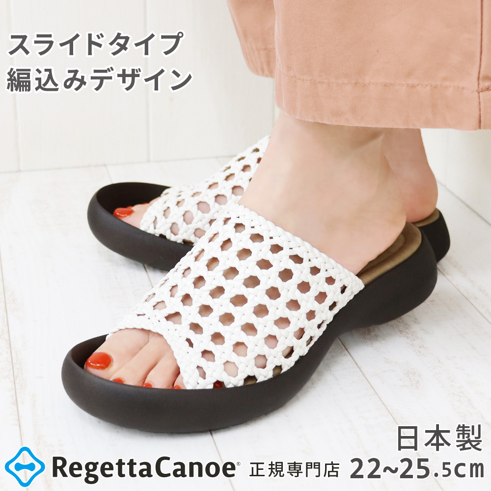 【キーワード】春夏 サマー SS AW カヌー カヌーサンダル リゲッタ リゲッタカヌー サンダル カジュアル シンプル 編込み フラット スライド 3.5cmヒール フレアローヒール ローヒール フェイクレザー 合皮 Canoe Re:getA RegettaCanoe シューズミニッシュ サンダル コンフォート コンフォートシューズ 日本製 MADE IN JAPAN レディース ウィメンズ 女性用 おしゃれ 履きやすい 歩きやすい 楽 ラクチン プレゼント 贈り物 黒 ブラック ブロンズ 白 ホワイト 20代 30代 40代 50代 60代