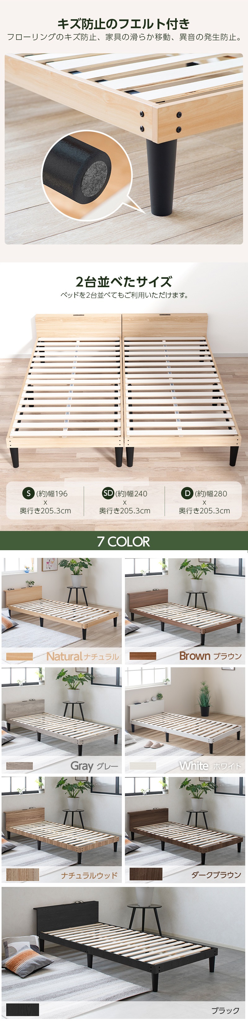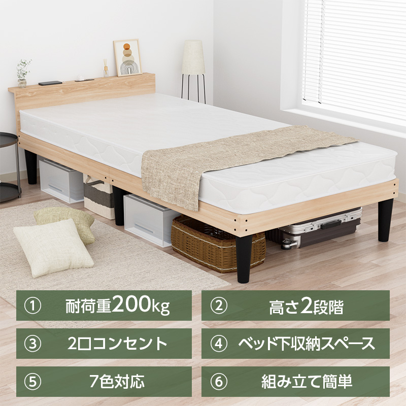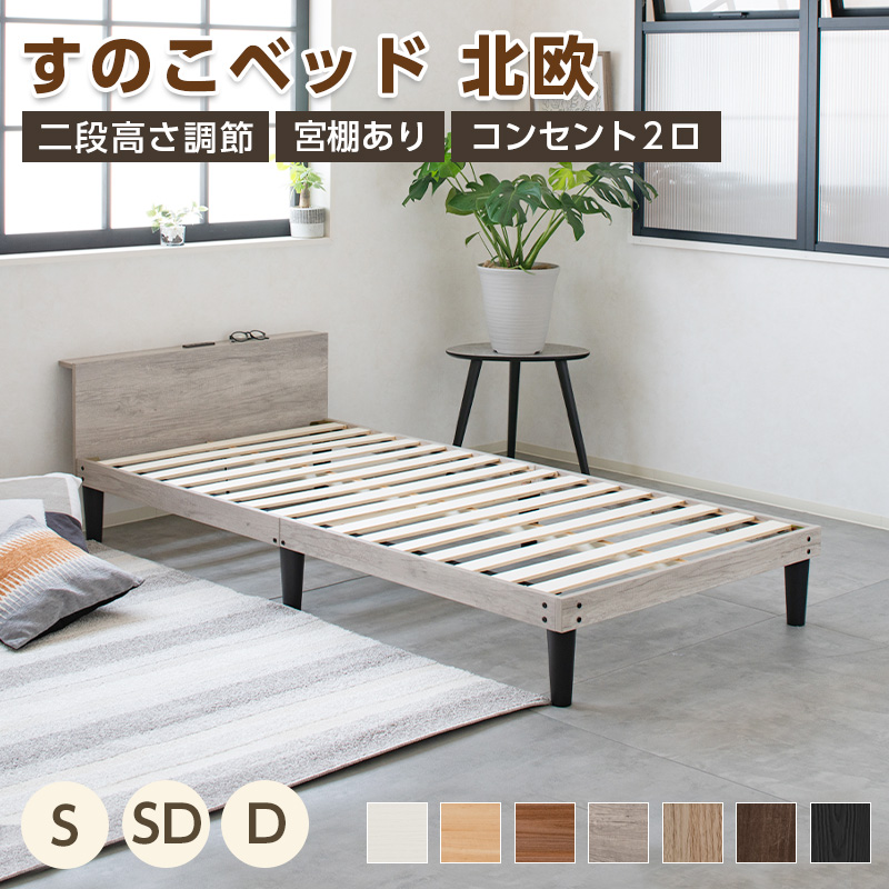 ベッド ベッドフレーム シングル すのこベッド セミダブル おしゃれ 北欧 収納 2段高さ調節 コンセント付 木製 ローベッド シングルベッド ナチュラル 新生活