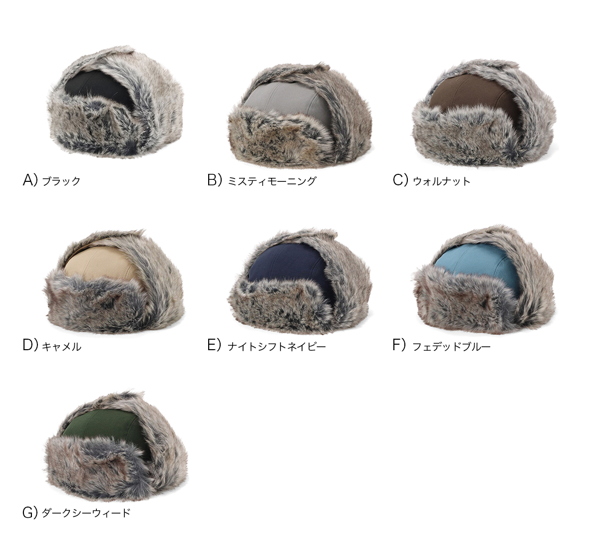 | カラー | A)ブラック B)ミスティモーニング(グレー) C)ウォルナット(ブラウン) D)キャメル(イエロー) E)ナイトシフトネイビー F)フェデッドブルー G)ダークシーウィード(グリーン) |