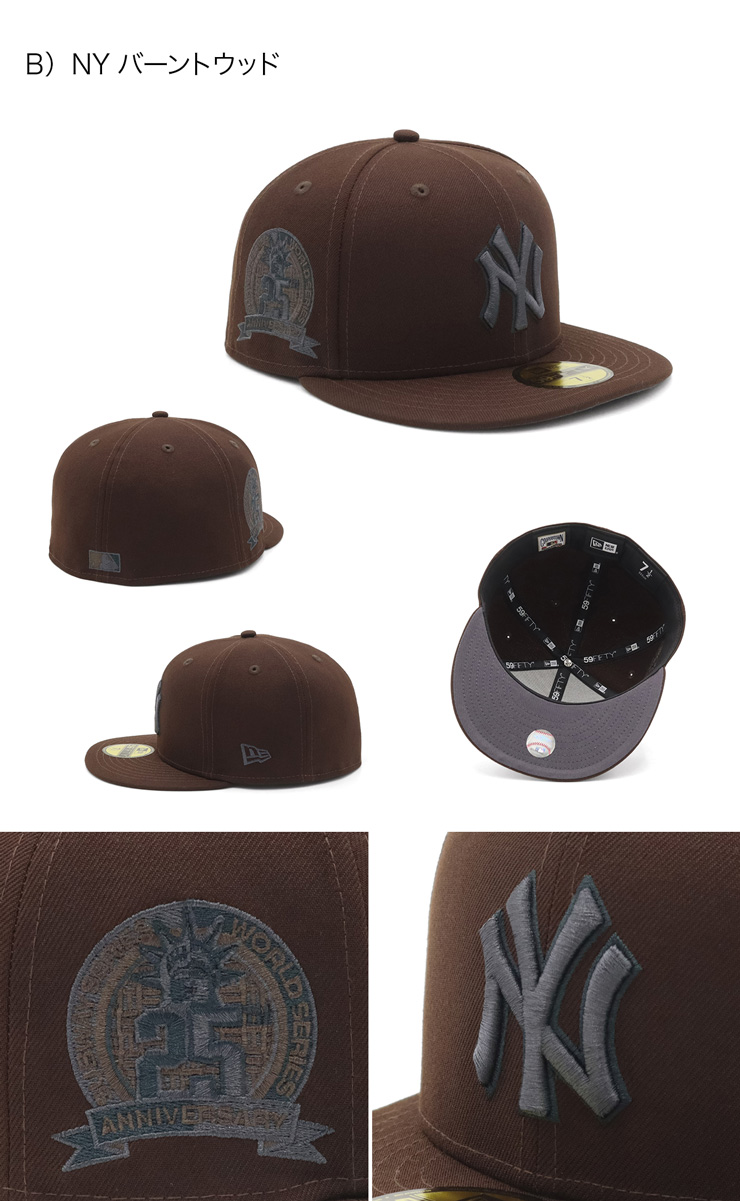 | スタイル | 59FIFTY ニューエラを代表する定番モデル。スポーツやストリートカルチャーのアイコンでもあり、世界中のアスリートやインフルエンサーたちが着用しています。メジャーリーガーがフィールド上で着用しているCAPと同じシルエットです。 (1)トゥルーフィッテド:サイズ調整のない仕様で、約1cm刻みのサイズ展開です。 (2)ストラクチャードキャップ:フロントパネルの内側に独自の芯 を作ることで型崩れしにくいクラシックなシルエットが保たれます。 (3)フルクラウン:独特の高く幅のあるフォルムです。 (4)フラットバイザー:出荷時は平らですが、好みに合わせて曲げることもできます。 |