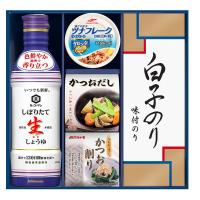 〇商品内容:キッコーマンしぼりたて生しょうゆ200ml、キッコーマン塩分ひかえめ丸大豆生しょうゆ200ml、宝幸オリーブオイルツナ70g、シーラックかつおだし(4g×3)、マルトモかつおパック(0.7g×3)、永谷園お吸いもの(2.3g×2)