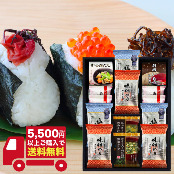 〇商品説明:有明海産海苔に梅だれの仕上げをした相性抜群の「南高梅のり」に塩だれの仕上げをした相性抜群の美味しい「塩のり」、国産のりを100%使用・保存料無添加で塩分を控えた甘口タイプの海苔佃煮、本場紀州産南高梅の果肉たっぷりの最高グレードを使用した、衛生的で使いやすく持ち運びに便利な個包装タイプの梅干しなど、食卓を彩る詰合せです