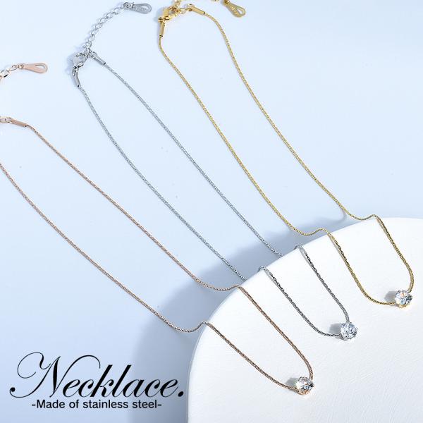 ネックレス ステンレス製 ストーン ジルコニア キュービックジルコニア ステンレス 小さい 小さめ 短め 華奢 おしゃれ 上品 錆びにくい プレゼント レディース