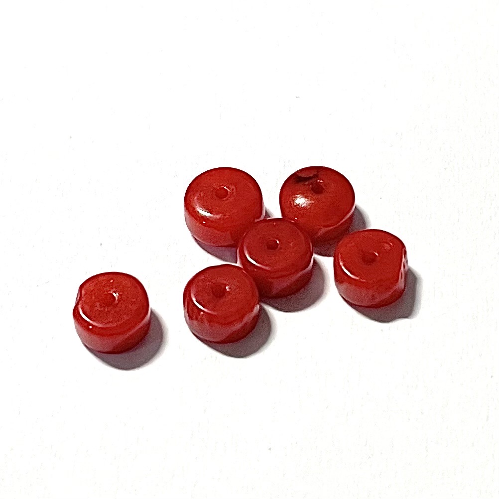 天然珊瑚ビーズ ボタン型 赤 6個入り