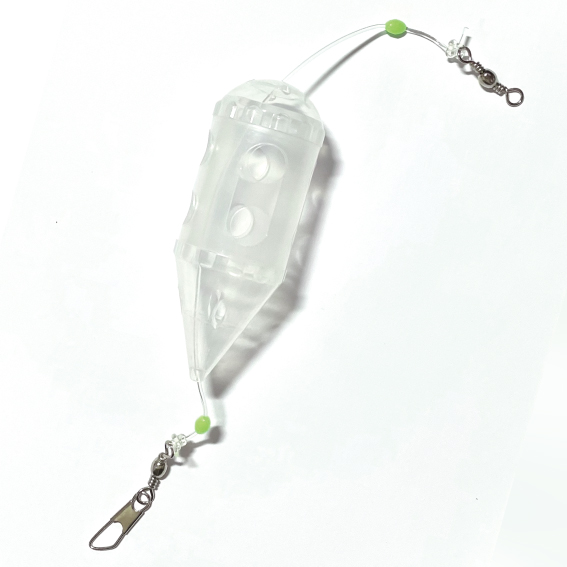 カゴ内にはナツメおもりやケミホタル、小型の水中ランプなども取付けOK。