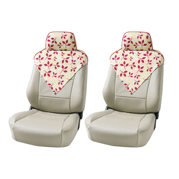 シートカバー フロント用 前席用 座席 運転席 助手席 汎用 カーシートカバー 2枚セット リーフスタイル ハーフカバー 撥水 ニット 素材 レッド 赤 4337-12RD