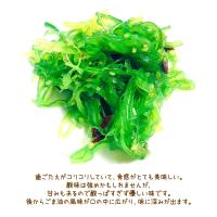 原材料名:茎わかめ、調味液(砂糖、食塩)、ごま、寒天、ごま油、醸造酢、レモン果汁、コーンシロップ、赤唐辛子、食塩、生姜パウダー、調味料(アミノ酸)、酸味料、甘味料(ステビア)、着色料(黄4.青1)