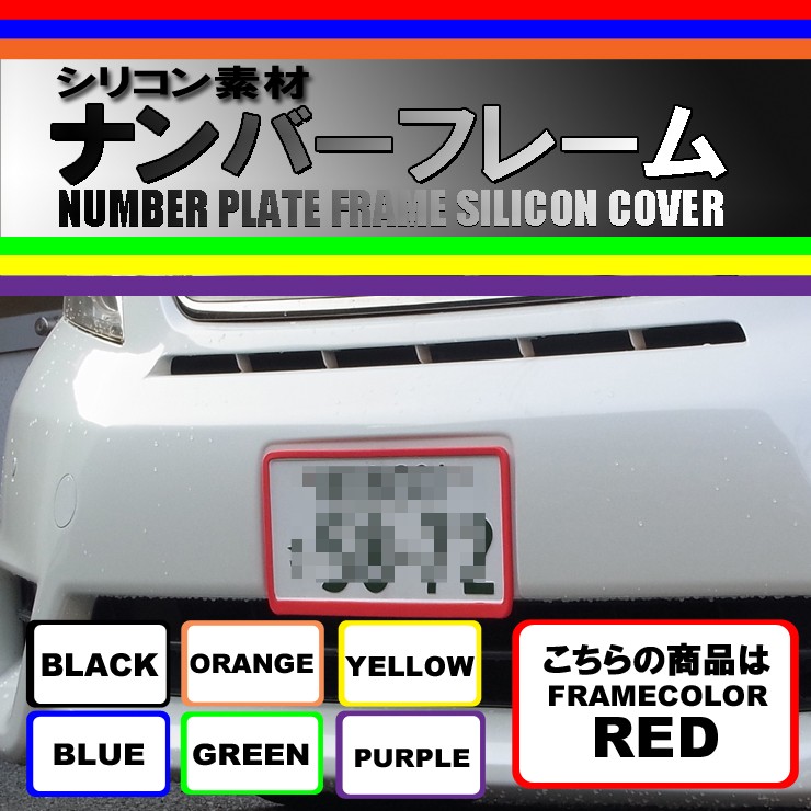 シリコン素材 ナンバーフレーム ナンバープレートカバー レッド 作業時間5分のドレスアップ 【配送料0円】