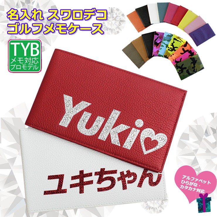 オリジナルの 名入れ スワロデコ ヤーデージブックカバー タテ型 本革 ゴルフスコアカードケース タテ型 スワロフスキー プロゴルファー ラッピング