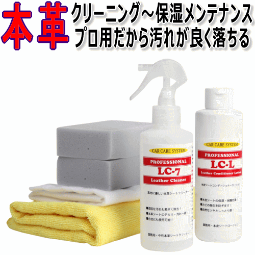 本革シートのクリーニングの後は、「ヒビ割れ」や「劣化」を防ぐ為にも保湿・保護が大事です! 本革シートをキレイにクリーニングすると、汚れやテカリの原因である油分が無くなると同時に本来必要な保湿成分も一緒にクリーニングしてしまう為、コンディショナーを使用して保湿することが大事です!保湿する事でしっとりした肌触りに仕上がり、防カビ効果も期待できます! そこで!本革シート専用クリーナー「LC-7」& レザーコンディショナーローション「LC-L」のセット販売です! ■本革シートクリーナー「LC-7」の詳細は こちらよりご覧ください。 ■レザーコンディショナーローション「LC-L」の詳細はこちらよりご覧ください。 |