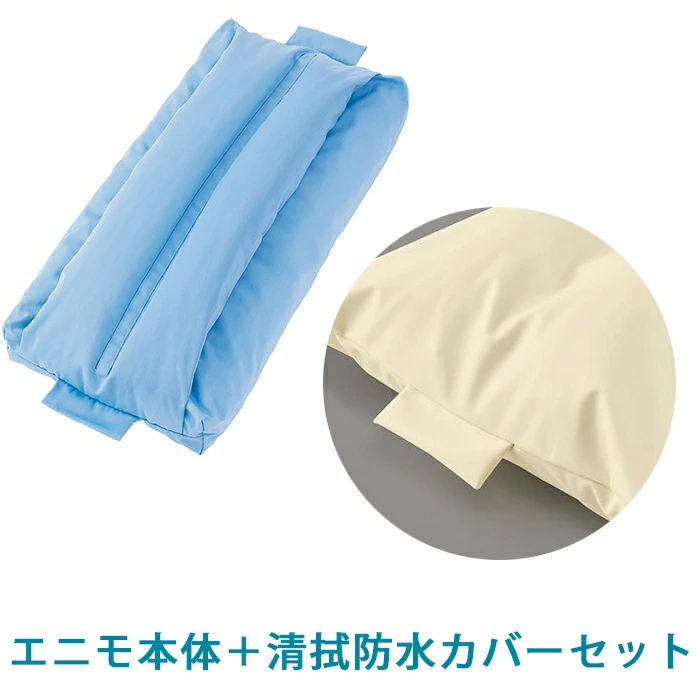 ・リバーシブル構造の体位変換クッション「エニモ」と専用「清拭防水カバー」のセット販売。