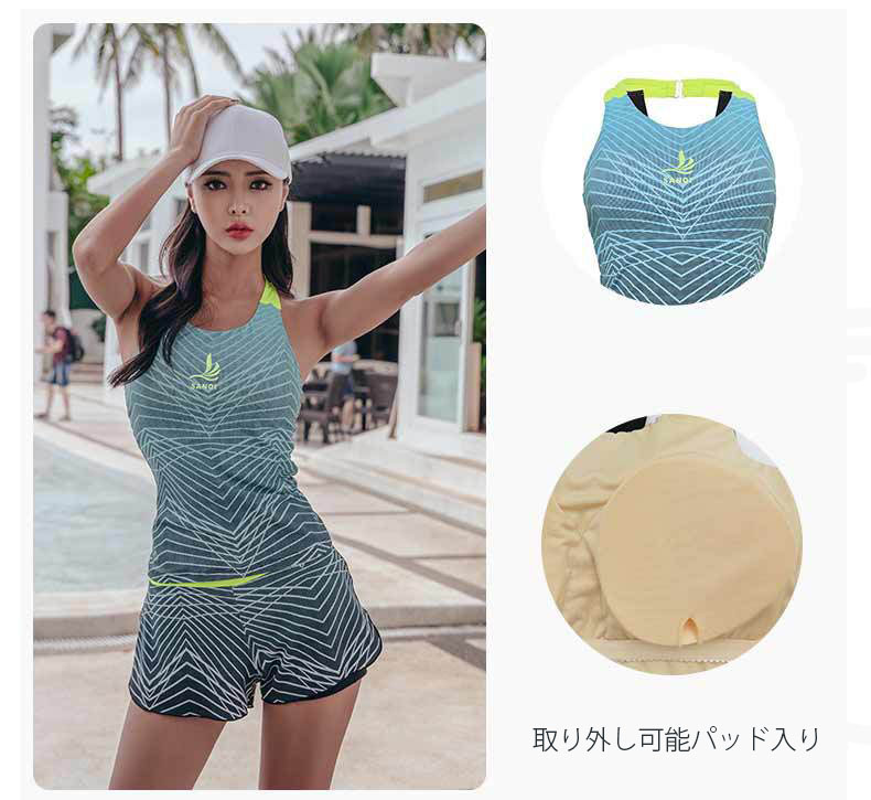 【MLあす楽タンキニ】2点セット 上下セット レディース タンクトップ ショートパンツ 体型カバー水着 ママ水着 20代 30代 40代 ぽっちゃり オトナ女子