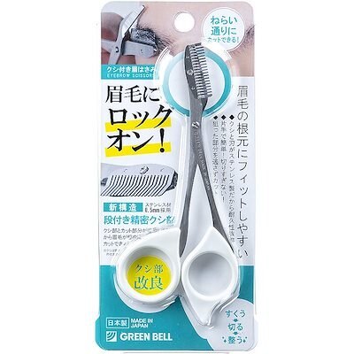 ステンレス製 クシ付き眉はさみ ホワイト グリーンベル ( まゆばさみ 眉毛 眉毛のお手入れ マユバサミ ) ポスト投函 送料無料