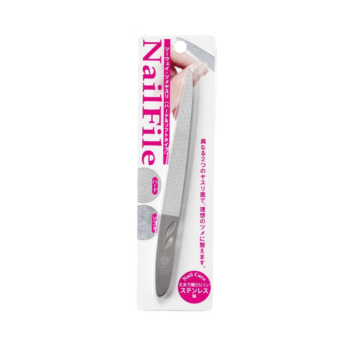 異なる2つのヤスリ面で、理想のツメに整えます。サビにくく耐久性に優れたステンレス製で、ヤスリ目は磨り減りにくく、長くご使用いただけます。