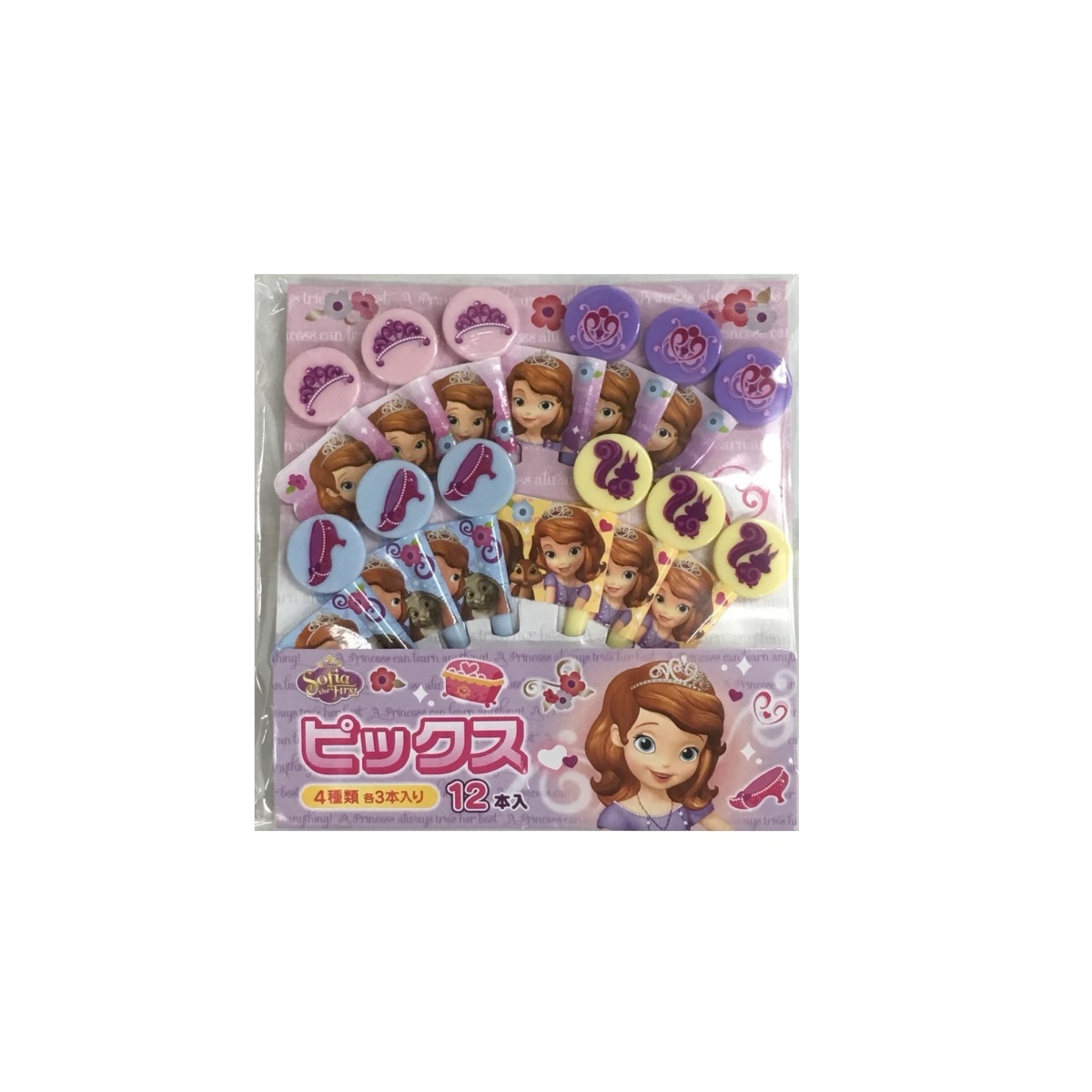ディズニープリンセス「ソフィア」のかわいいランチピックスです。4種類×各3本の合計12本入りとなります。