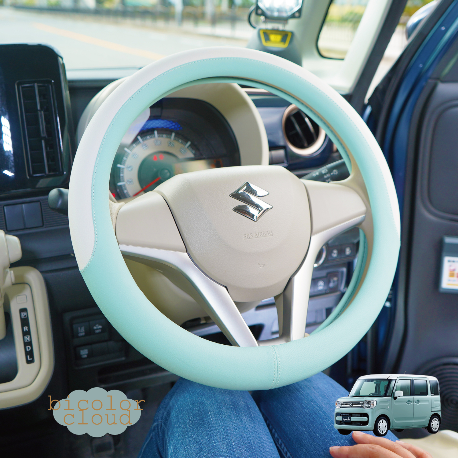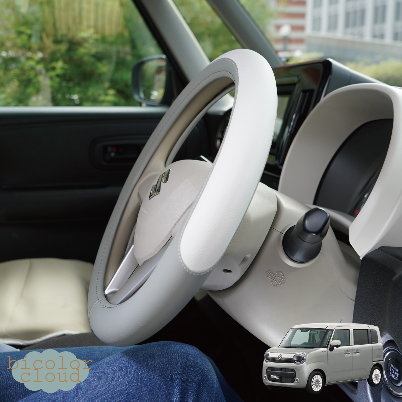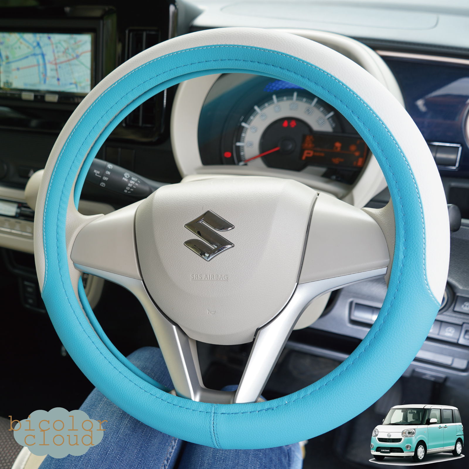 ハンドルカバー 軽自動車 Sサイズ バイカラー クラウド かわいい パステル おしゃれ ツートン 普通車 高品質 ステアリング カバー z-style