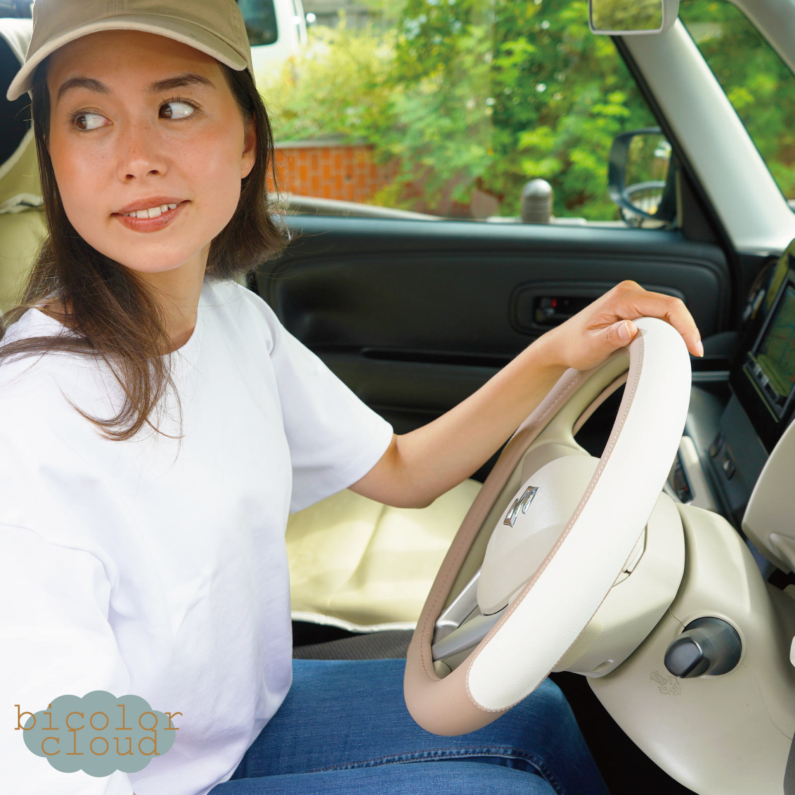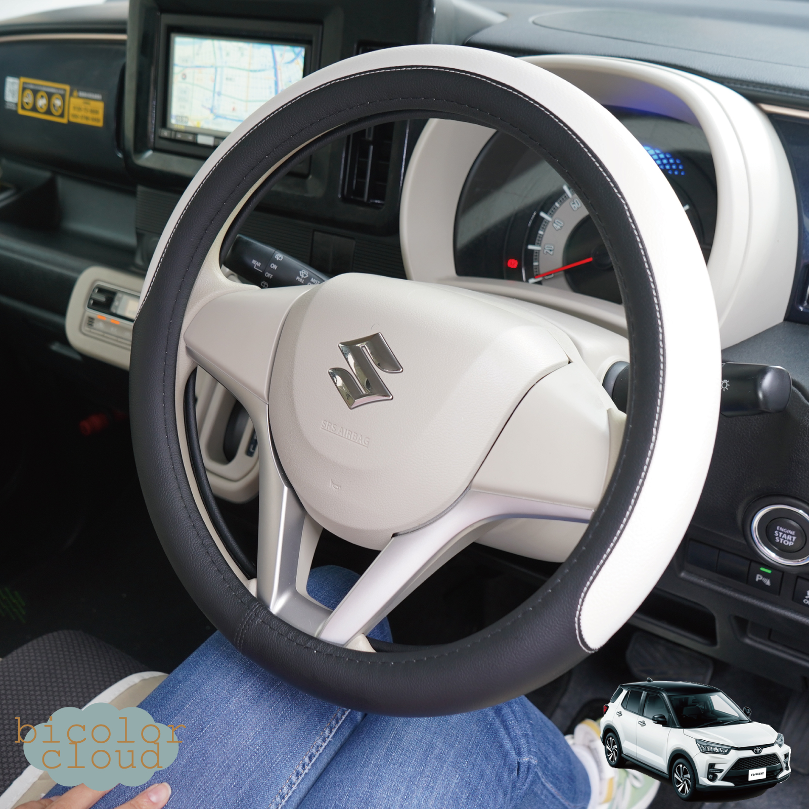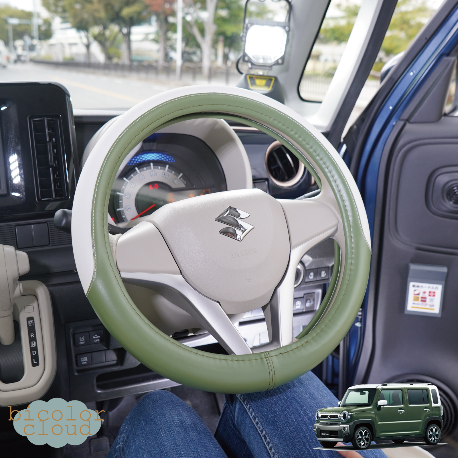 ハンドルカバー 軽自動車 Sサイズ バイカラー クラウド かわいい パステル おしゃれ ツートン 普通車 高品質 ステアリング カバー z-style