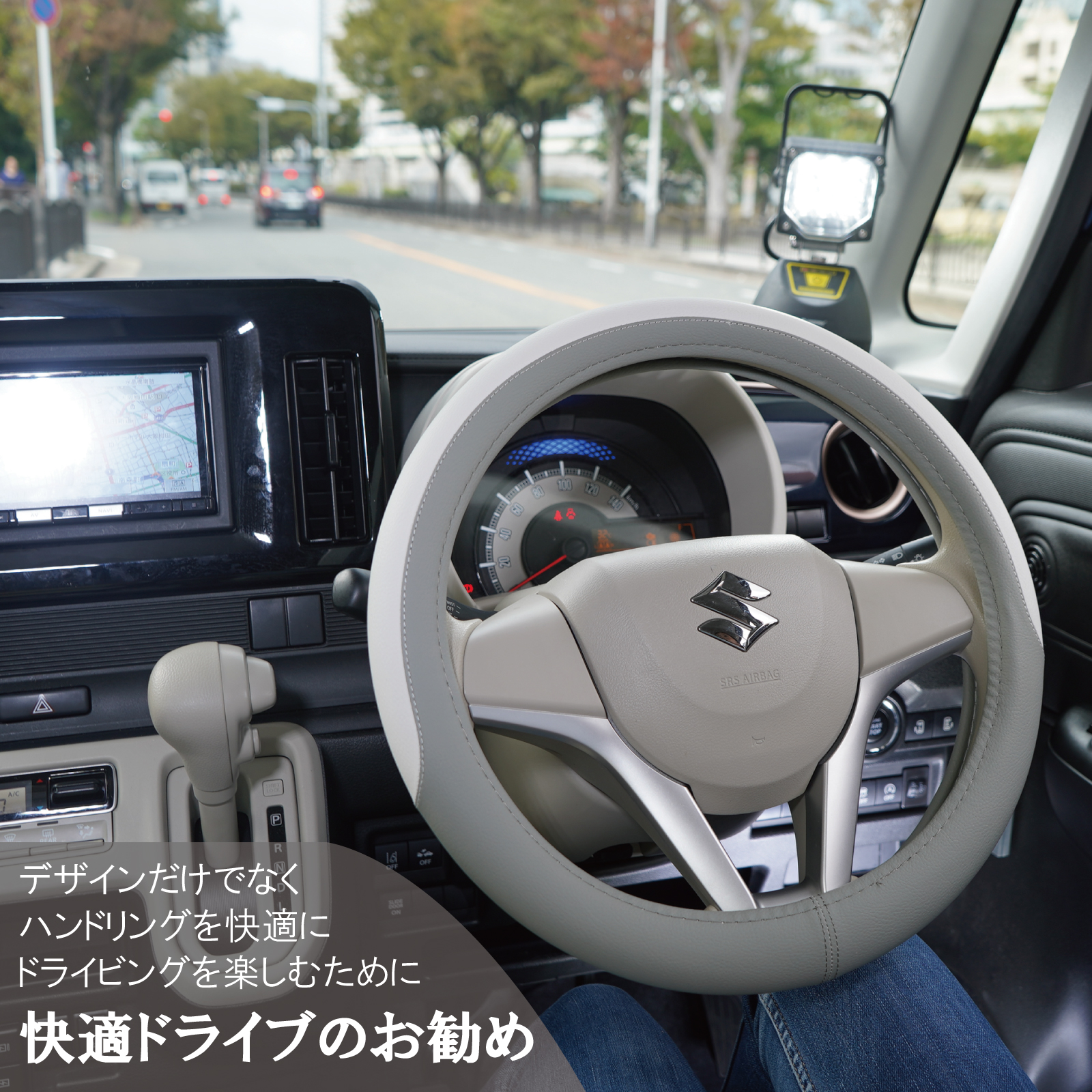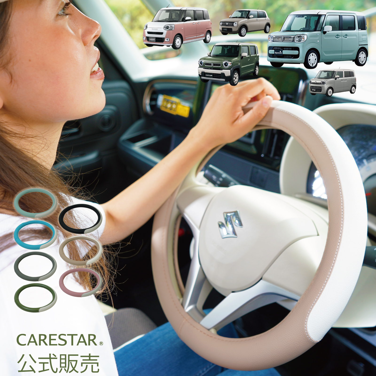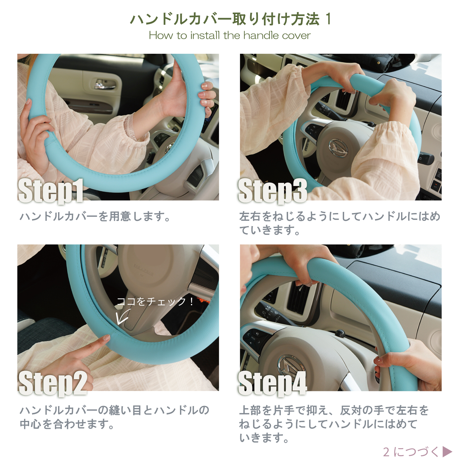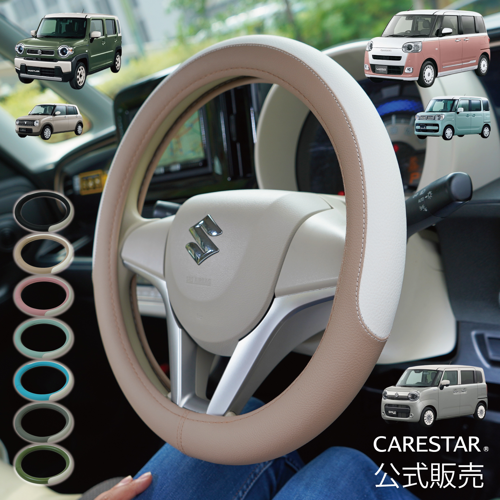 ■適合車種 ◎参考適合車種 軽自動車=ジムニー、ワゴンR、ワゴンRスマイル、ラパン、ハスラー、MRワゴン、エブリイ、パレット、アルト、ムーヴ、ムーヴキャンバス、タント、タフト、キャスト、ウェイク、アトレー、ミラ、ミライース、NBOX、N-ONE、NVAN、N-WGN、ライフ、ゼスト、ekワゴン、モコ、オッティ、ルークス、ルクラ、プレオ、ステラ、スピアーノ、エブリイ、AZワゴン、アトレーなど その他軽自動車全般 普通車=プリウス、アクア、ノア、ヴォクシー、ウィッシュ、ステップワゴン、ゼスト、ソリオ、ブーン、アウトバック、インプレッサ、フォレスター、レヴォーグ、キックス、ムラーノ、デリカ、タンク、ルーミー、ジャスティ、ヤリス、ライズ、ロッキー、RAV4、ノート、セレナ、bB、キューブ、マーチ、フィット、ステップワゴンなど普通車・ミニバンなど全般 ※グレードにより異なる場合もありますので、必ずあらかじめお客様のお車の直径(外側から外側までの長さ)をお調べの上、ご利用下さい。 ハンドルはズレたりしないよう、フィット感を重視しピッタリと安全性を考慮して作られています。