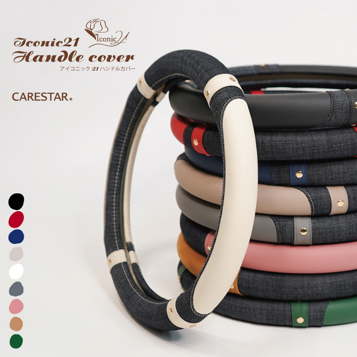 | 商品内容 | 軽自動車、普通車、ミニバン、軽トラック汎用ハンドルカバー(ステアリングカバー) ●形状:円形(通常丸型) ●サイズ:ハンドル直径横36.5cm〜37.9cm ●カラー:全9色 1ブラック、2レッド、3ネイビー、4ベージュ、5ホワイト、6グレー、7ピンク、8ブラウン、9グリーン ●品質:デニム ポリエステル、配色レザー PVC(ブラウンのみPU)、スタッズ 亜鉛合金・メッキ、芯材 合成ゴム |