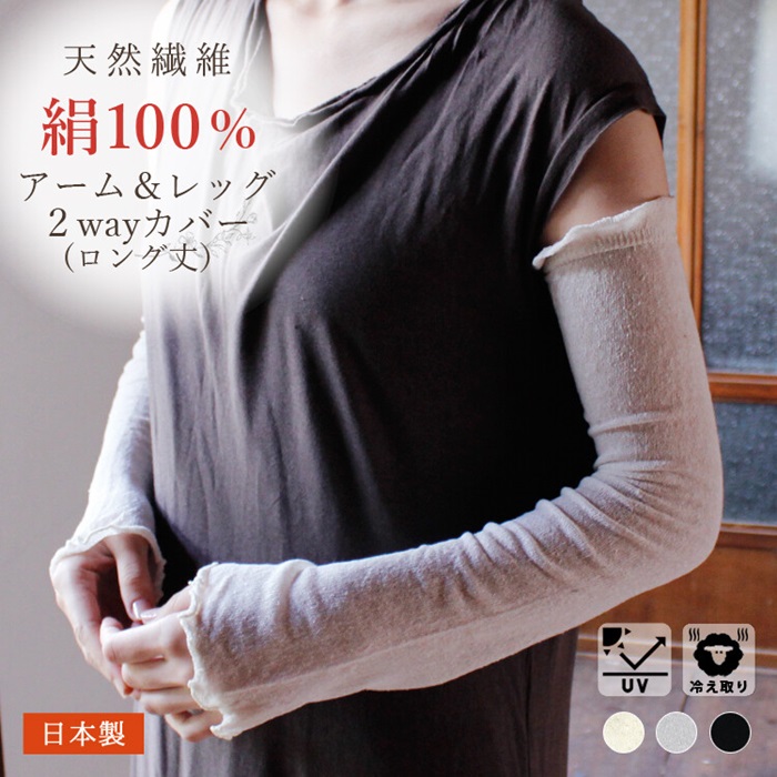 アームカバー レッグカバー 2way レディース シルク 絹100% 紫外線対策 UVカット 日焼け対策 日本製 ギフト プレゼント 旅行 トラベル SA06-04/SA06-09/SA06-14