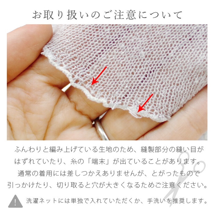 また、人の肌と同じたんぱく質を成分とする絹100%の糸だけで編み上げているので、敏感肌の方にも安心して着用いただけます。