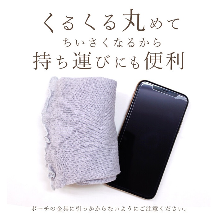 薄手で軽く小さくたたんでポーチに入れることもでき、持ち運びにも便利!