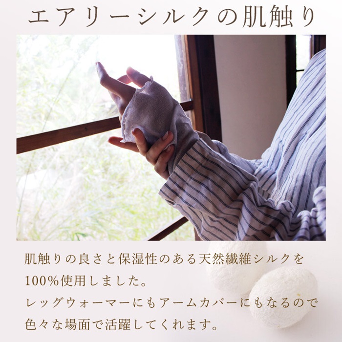 絹特有のふんわりとしたさわり心地で、まるで素肌感覚のようなレッグ&アームカバーです。