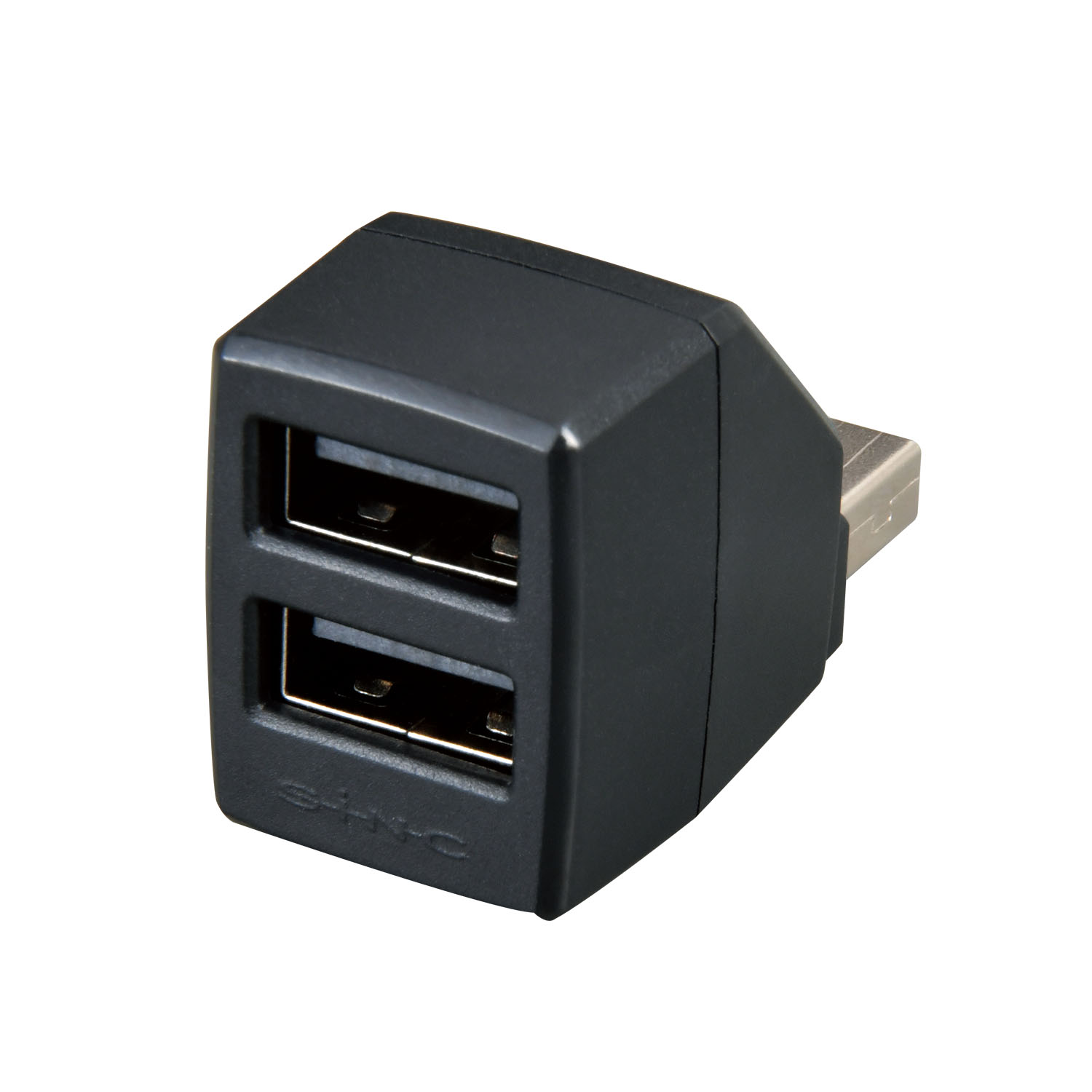 ●1つのUSBポートの電力を2つに分ける、同時充電対応のUSBコネクター。