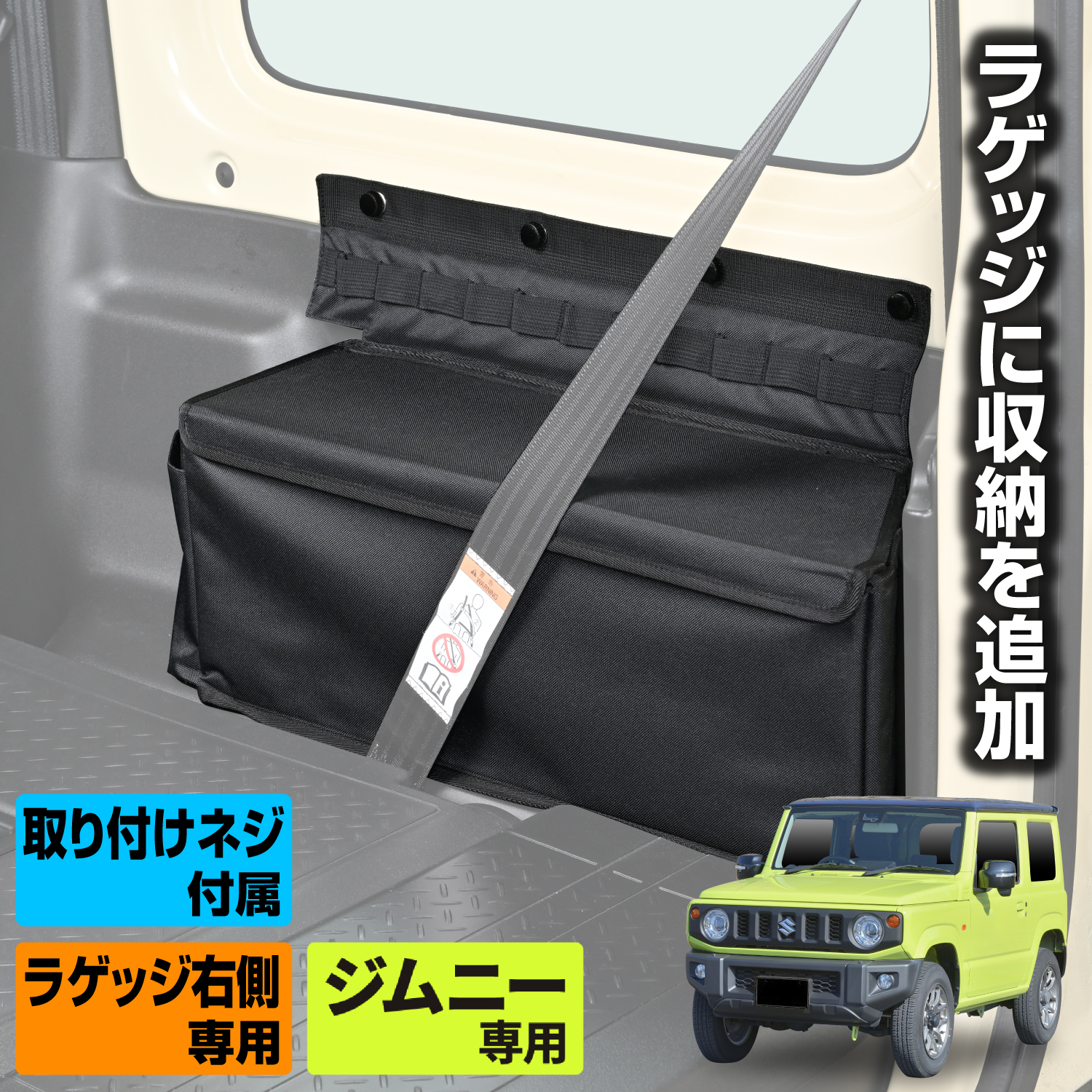 本製品はジムニー/ジムニーシエラ(JB64/JB74)のラゲッジ右側専用の収納ボックスです。 他車種にはお取り付けできません。