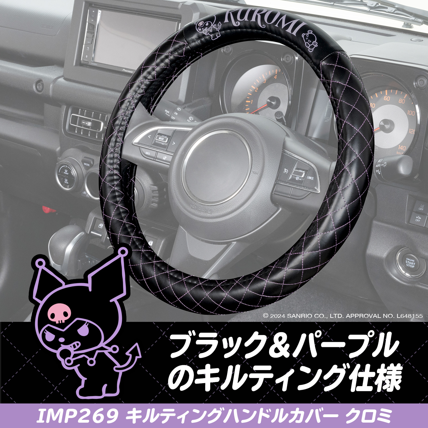 サンリオ カー用品 クロミ キルティングハンドルカバー 36〜37cm 対応 軽 普通車 IMP269 ブラック 取付簡単 保護 公式ライセンス商品 セイワ(SEIWA)