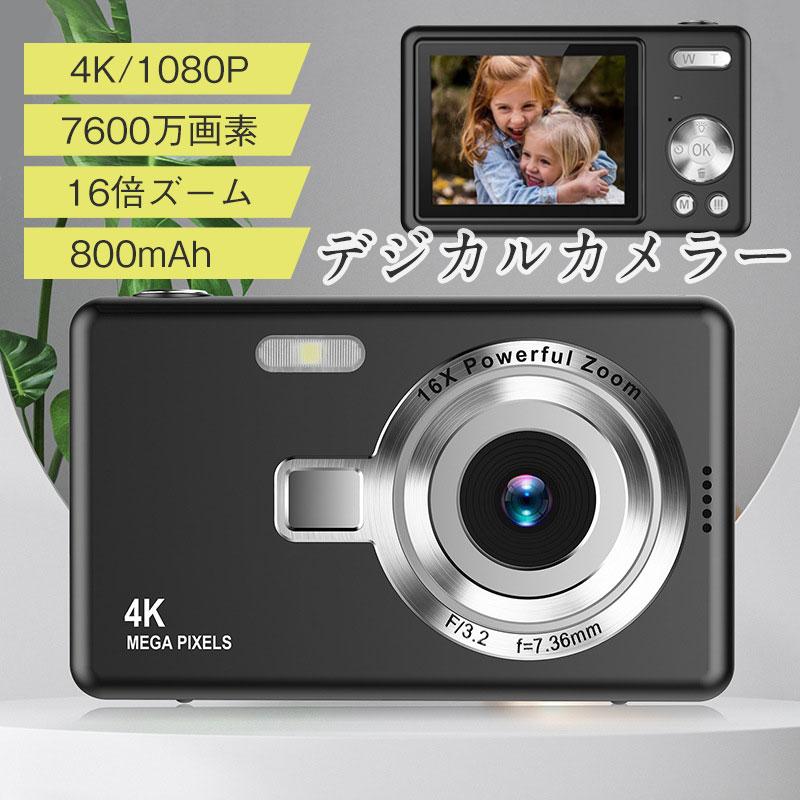 デジカメ デジタルカメラ 4K 7600万画素 16倍ズーム 高画質 オートフォーカス ウェブカメラ機能 手振れ補正 IPS大画面 防塵 軽量 初心者