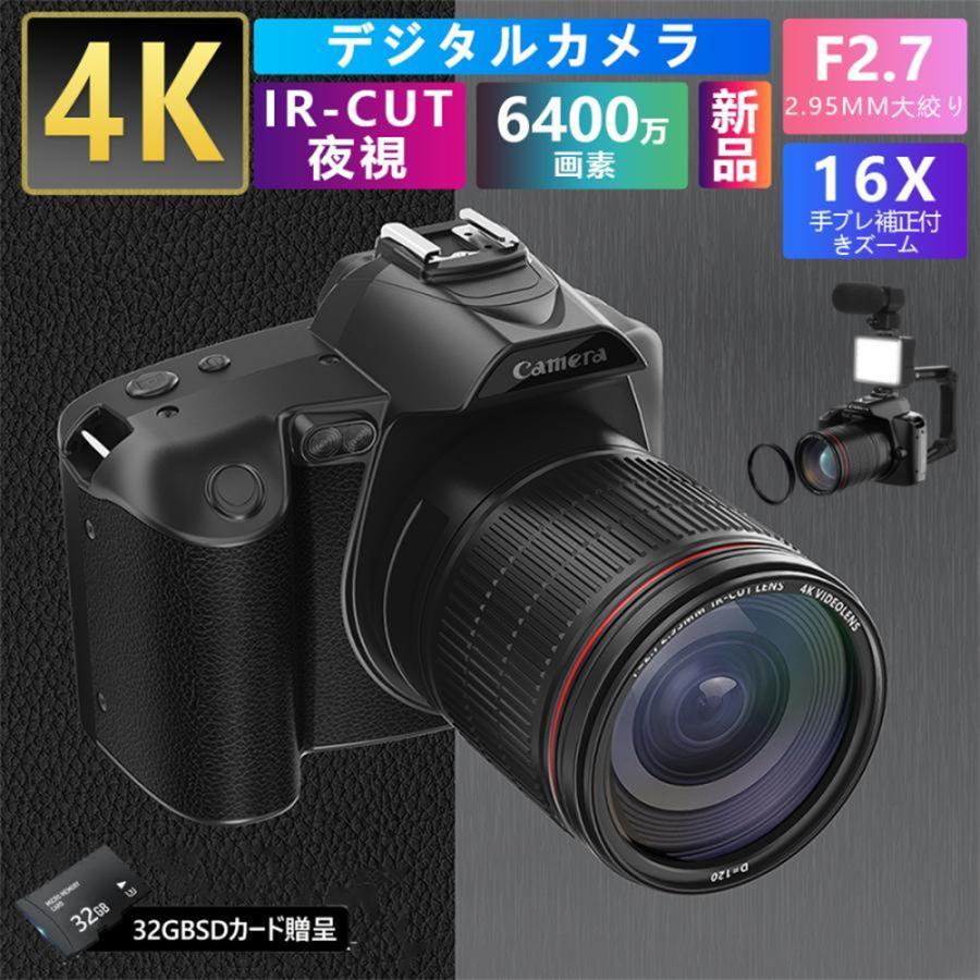 デジタルカメラ ビデオカメラ 6400万画素 4K 安い 撮影 小型 カメラ 6倍デジタルズール 16倍ズーム IRナイトビジョン Wifi 広角レンズ超高画質 電子手ブレ補正