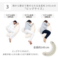 (上図の左側のような)直線型抱き枕の場合、抱き枕がおなかに当たって頭と脚が乗せづらくなったり、抱き枕をおなかに押し付けて使用しなければなりませんが、弓形状の場合、おなかを圧迫せずに頭と脚を乗せられます。