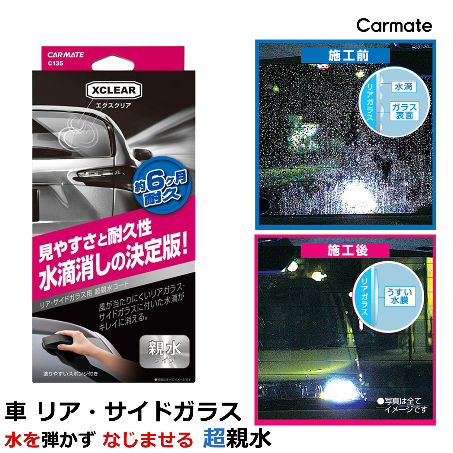 カーメイト C135 エクスクリア リア・サイドガラス用 超親水コート 親水被膜を形成 リアガラス・サイドガラスの視界を確保 車のリアガラス サイドガラス専用 撥水コーティング剤 6ヶ月耐久 親水タイプ なじませる 視界良好