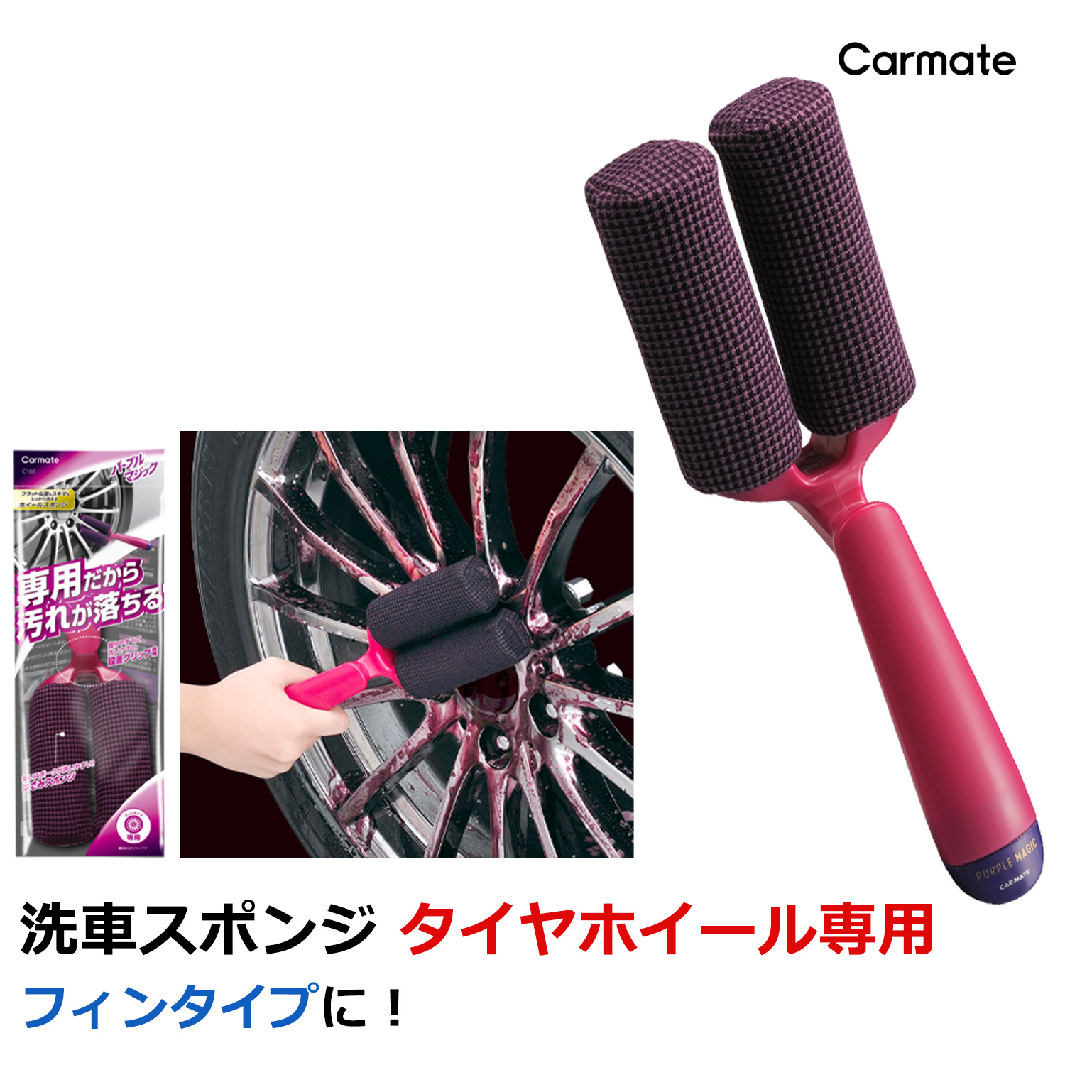 洗車 スポンジ 車 メンテナンス 洗車用品 カーメイト C165 パープルマジック ホイールスポンジ サンドウィッチ 自動車ホイールの洗浄用具 ホイール専用スポンジ 超極細マイクロファイバー汚れ 強力除去 1個入 洗車ツール carmate ホイール専用スポンジ 材質(グリップ ABS、スポンジ ポリウレタンフォーム、マイクロファイバー ポリエステル85%/ナイロン15%)carmate