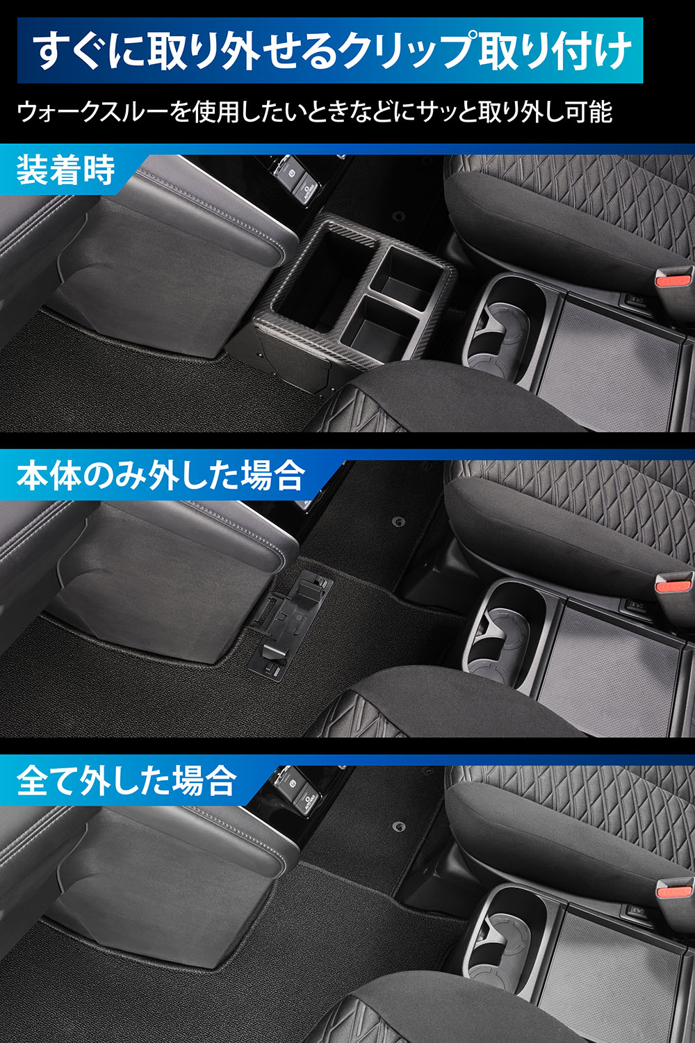 ・本製品は前席中央のコンソール下部のフロアマットにクリップを取り付けてクリップと本体を取り付けて使用する製品です。