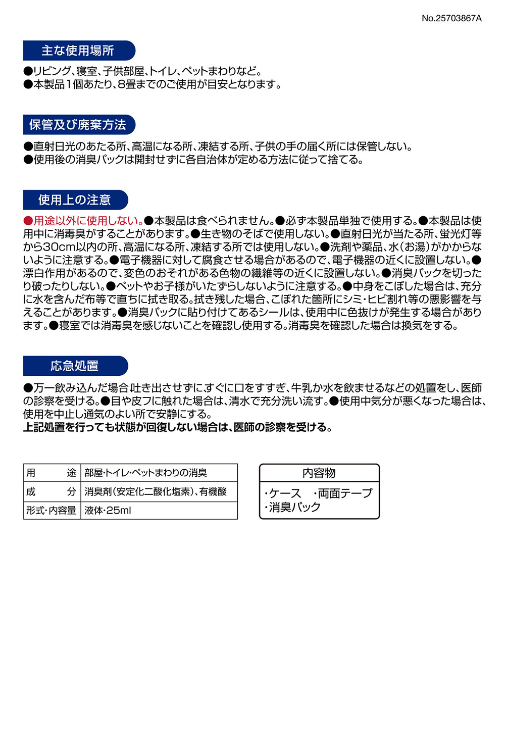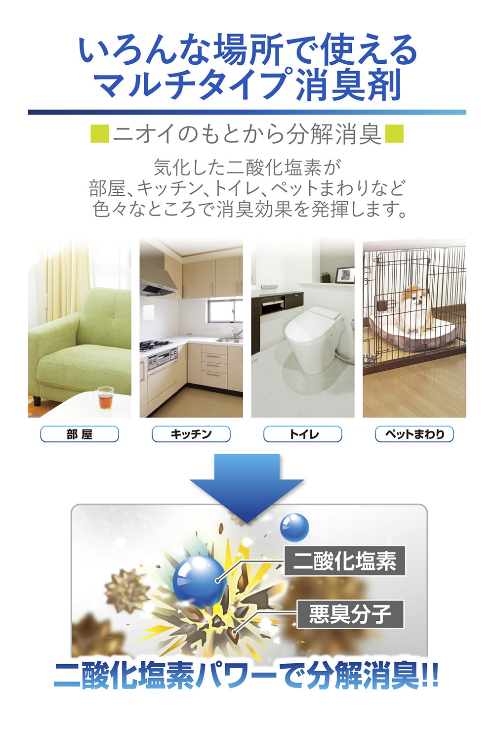 成分:消臭剤(安定化二酸化塩素)、有機酸