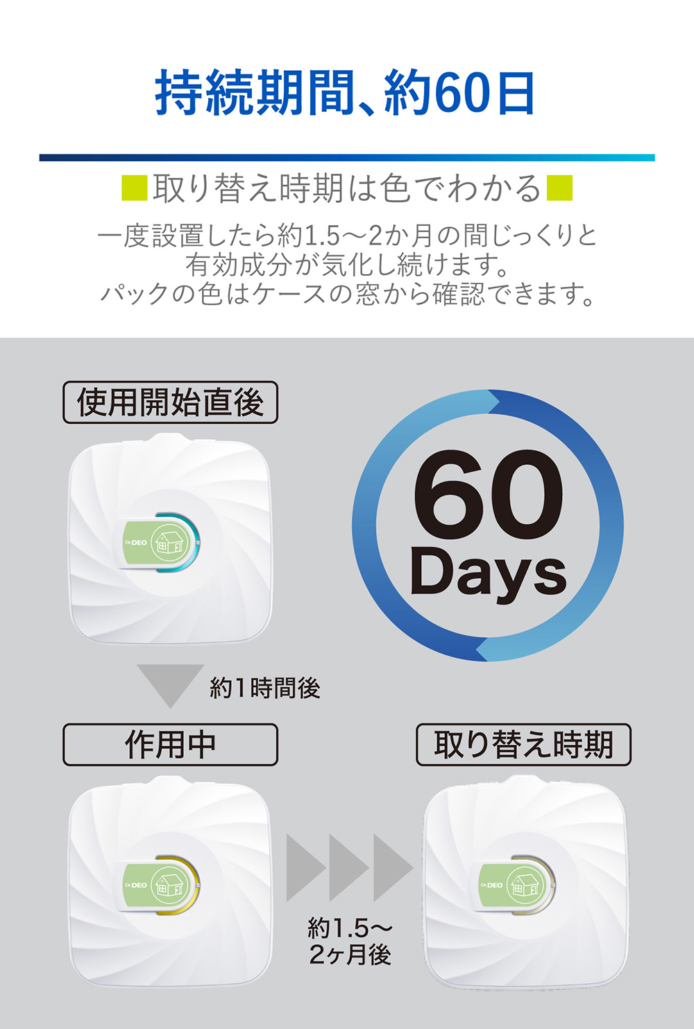 ・約60日間持続(成分の広がりや効果・持続性は使用環境によって異なります。)