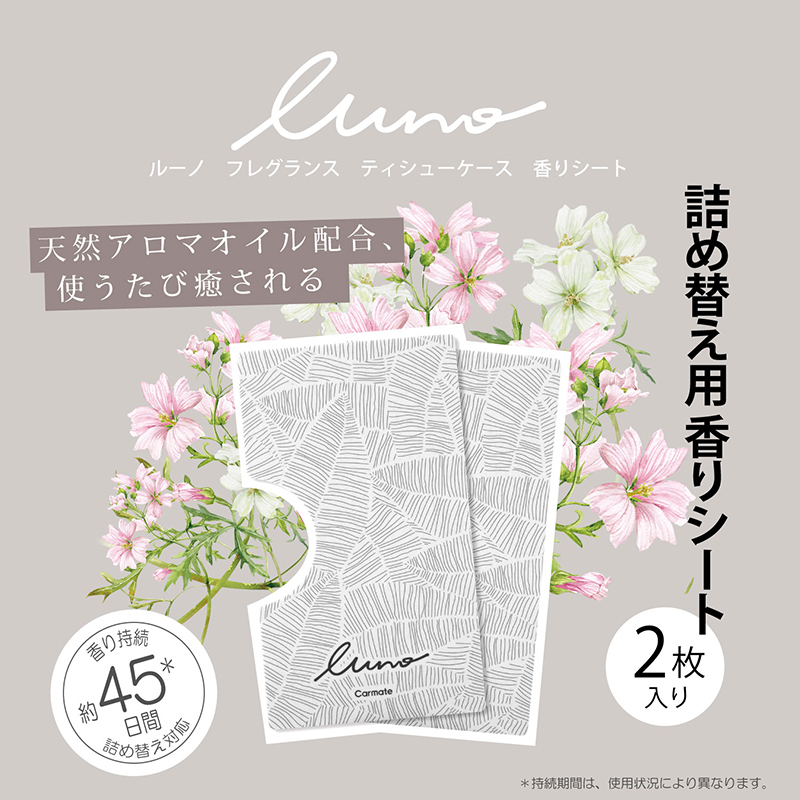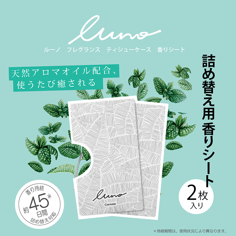 ティッシュケース ティッシュカバー ティッシュボックス ティッシュペーパー 香り ティッシュケース おしゃれ ティッシュケース 木製 ルームフレグランス 家庭用 芳香剤 カーメイト DH542 ルーノ フレグランスティシューケース 香りシート ミント 詰め替え用 luno carmate