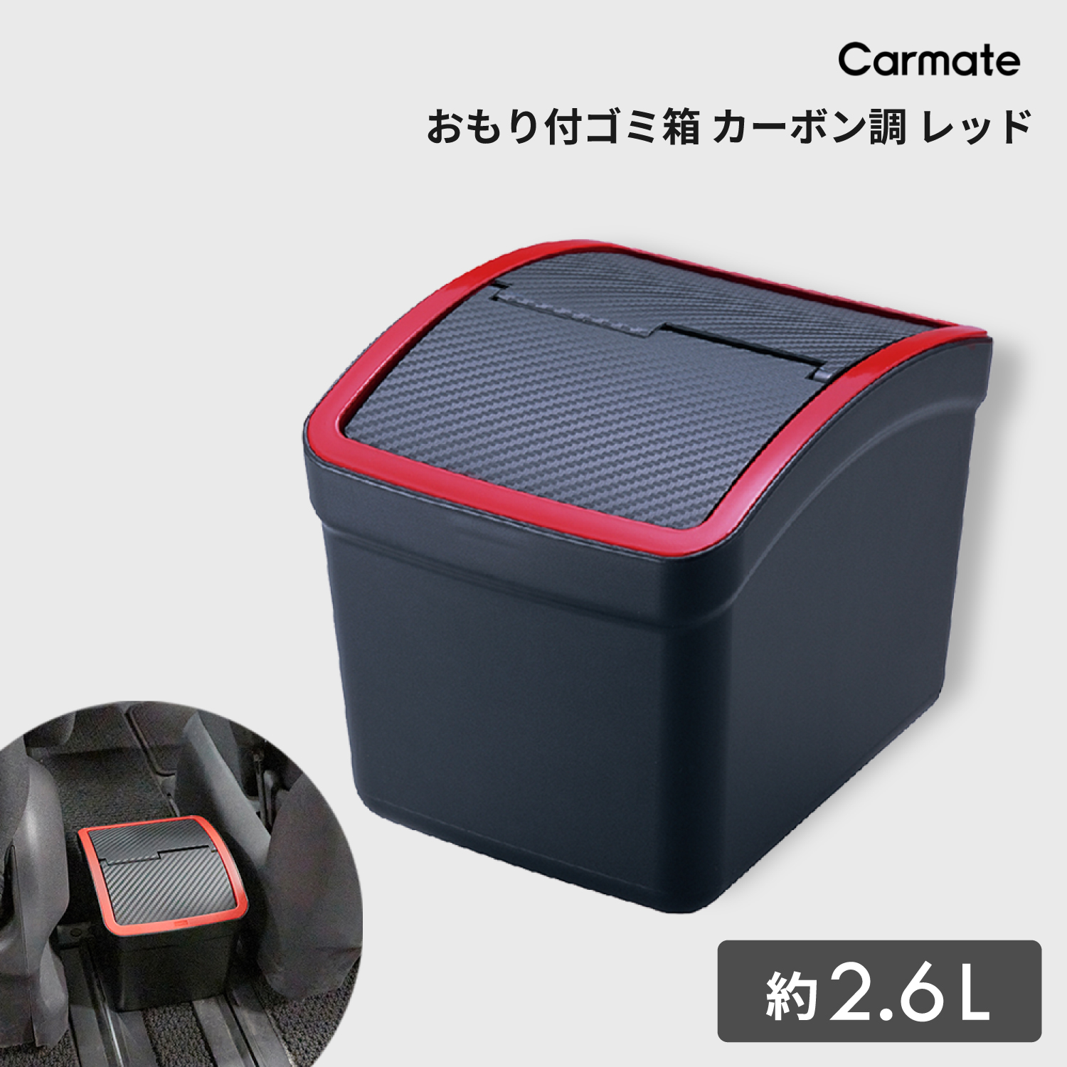 フタの部分にはスポーティな見た目のカーボン調デザインを採用しています。フタの縁にはアクセントとしてレッドのラインが施され、車内に洗練されたスタイリッシュな雰囲気を演出します。