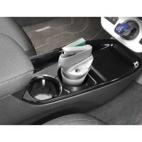 本製品は、車のカップホルダーに置いて使用。本体はタンブラーのような形状で、ボディをカップホルダーに収まるサイズで設計しているので、様々な車種で使用可能。